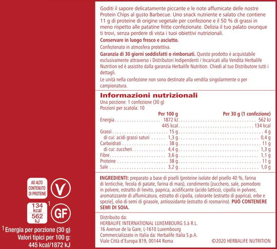· Ogni confezione di Protein Chips gusto Barbecue contiene 11g di proteine
