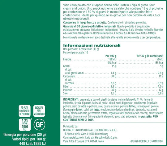 · Ogni confezione di Protein Chips gusto Sour cream & onion contiene 12 g di proteine